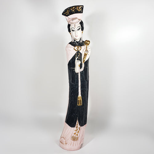 Figura Antigua de Cerámica Dama Asiática 49 cm Escultura Vintage