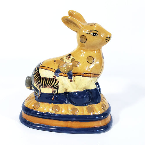 Figura Antigua Conejo Coleccionable tipo Staffordshire Motivos Circo Vintage