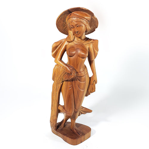 Escultura Antigua Madera Tallada Dama Asiática Vintage 30 cm