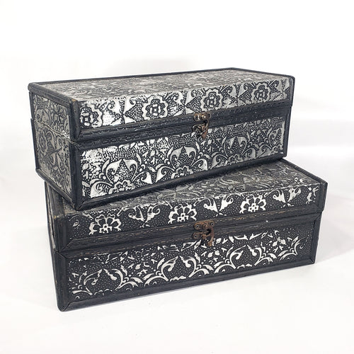 Par de Cofres, Baúles o Cajas Artesanales con Cubierta de Repujado