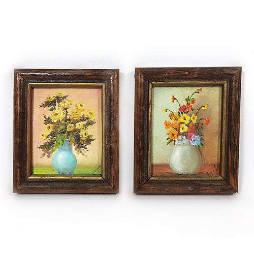 Par Cuadros Miniatura Óleo Vintage Floreros Coleccionables