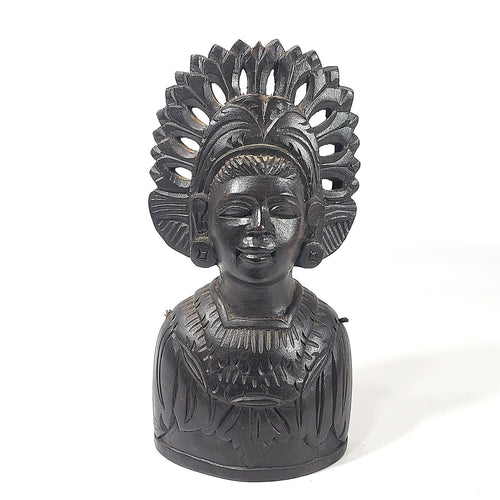 Campana Indonesia Madera Tallada, Dama Tradicional, 19 Cm