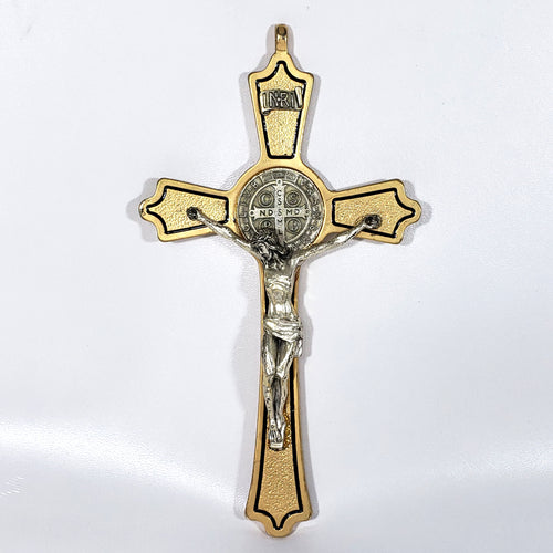Crucifijo Medalla San Benito Dorado Plateado Vintage 19 cm Italiano