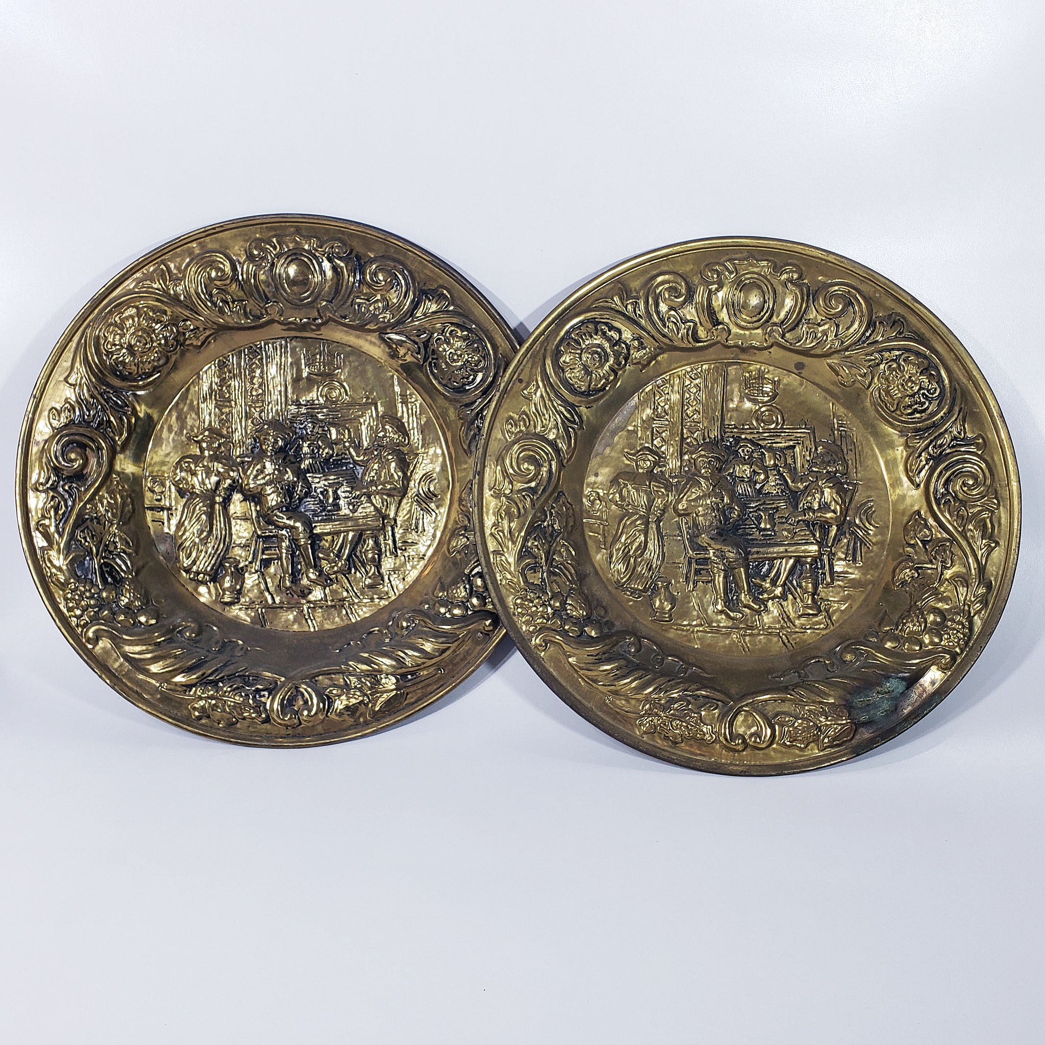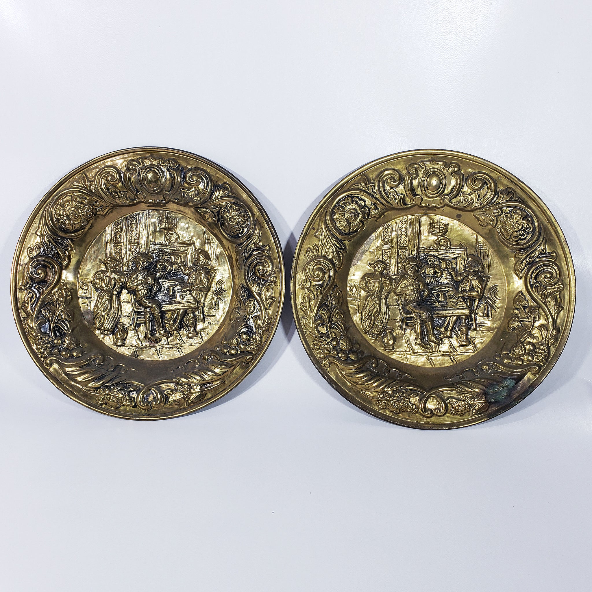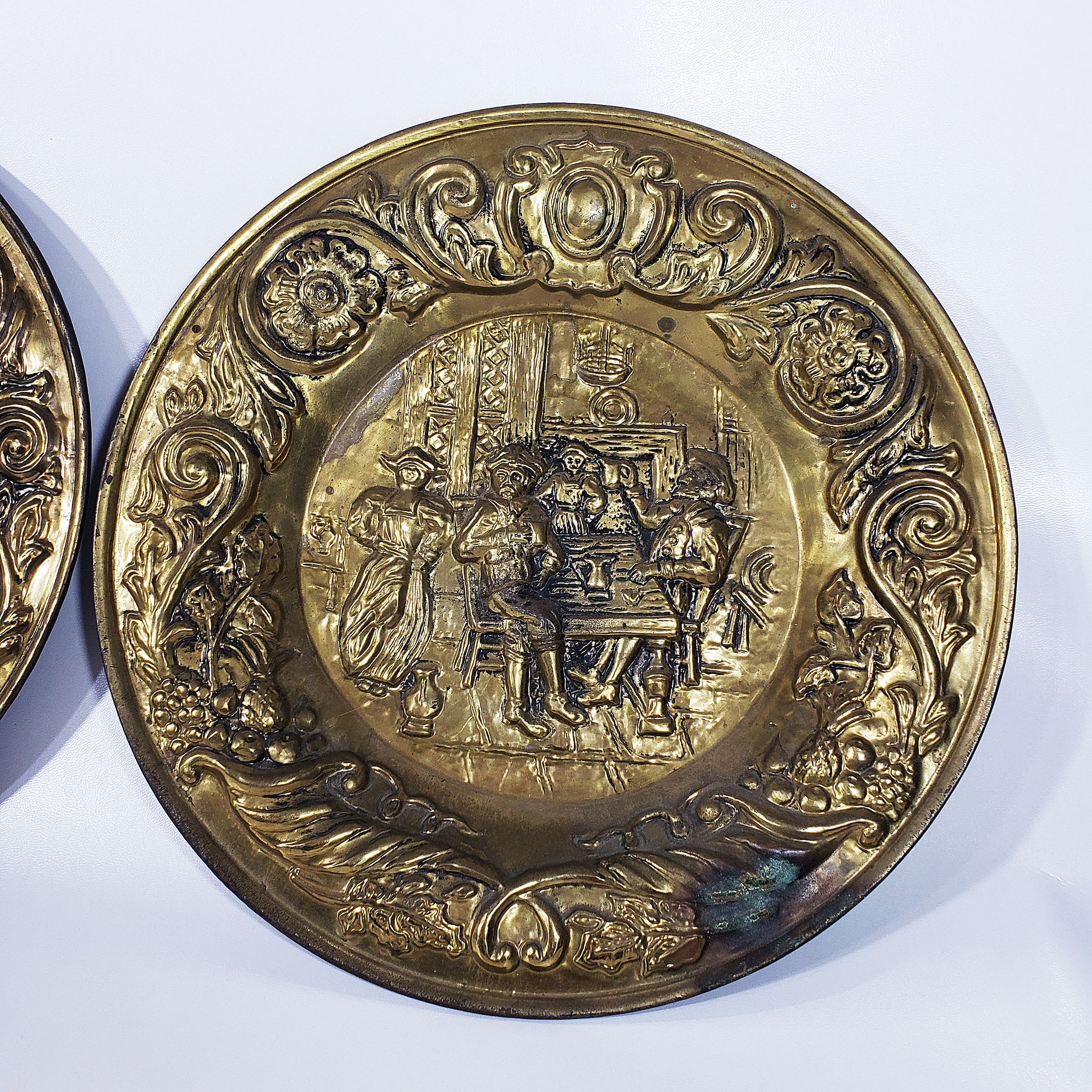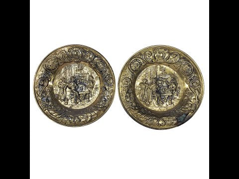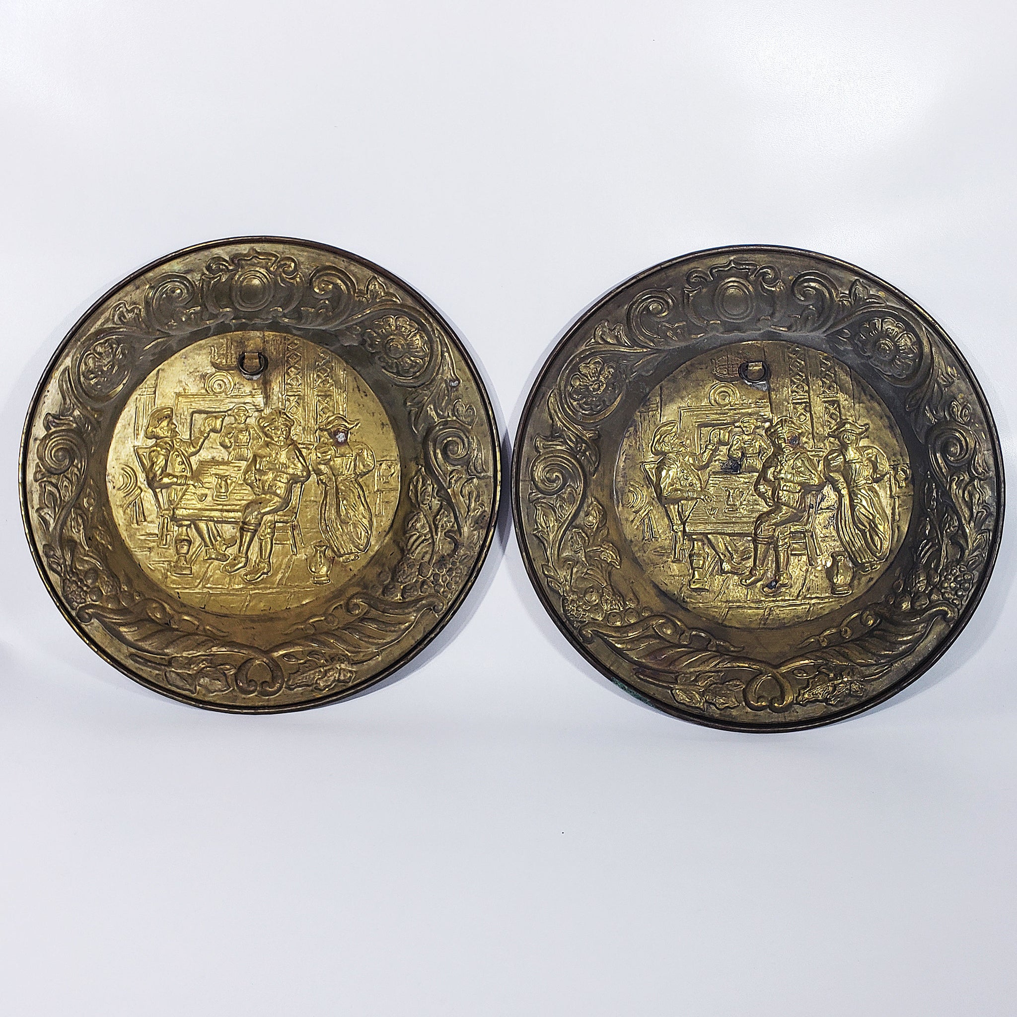 Hermoso par de piezas coleccionables antiguas realizadas en laton en Inglaterra. En la parte posterior tienen cada uno argolla para ser colocados en la pared y se detalla su lugar de fabricación con la leyenda "Made in England.