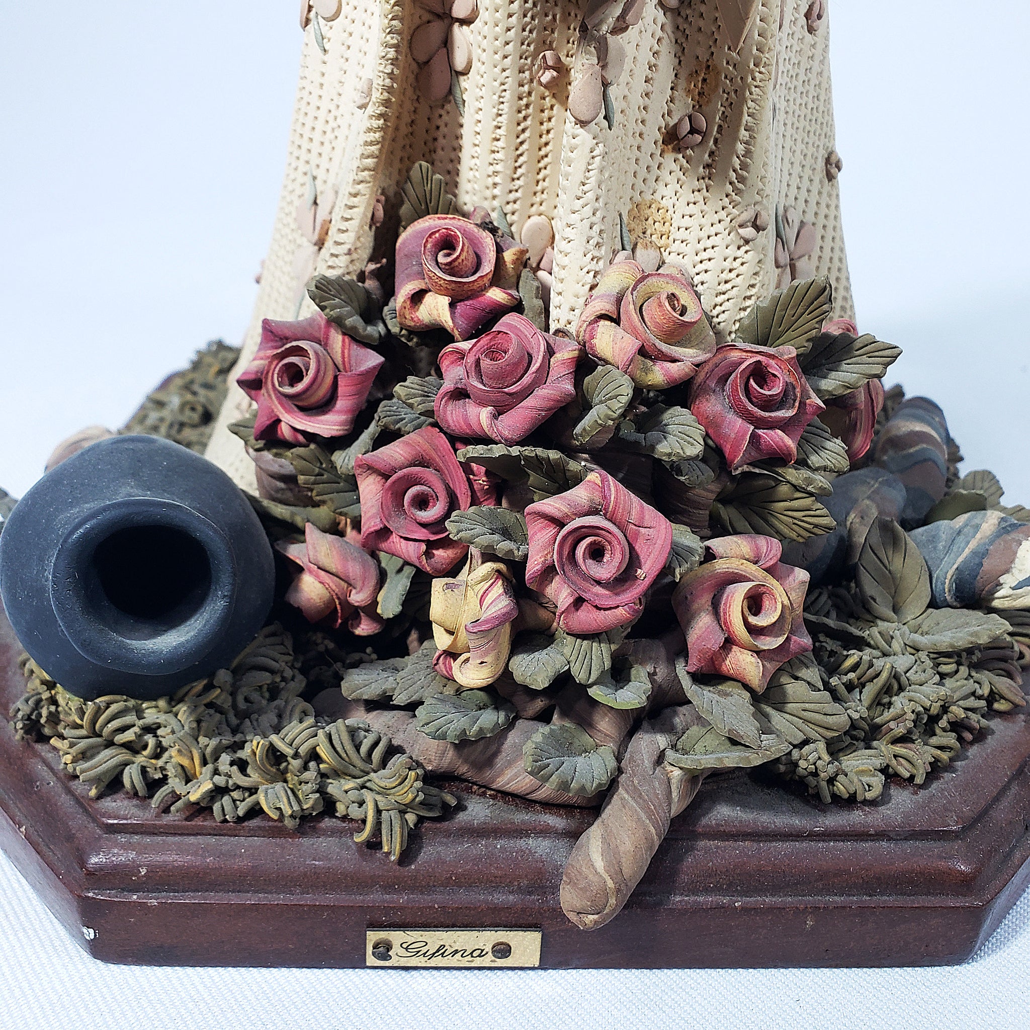 Preciosa artesanía de República Dominicana, con antigüedad aproximada de 30 años. La pieza representa una pieza de la más alta calidad y detalle dentro de este tipo de artesanías. Hecha a mano en porcelanicron.