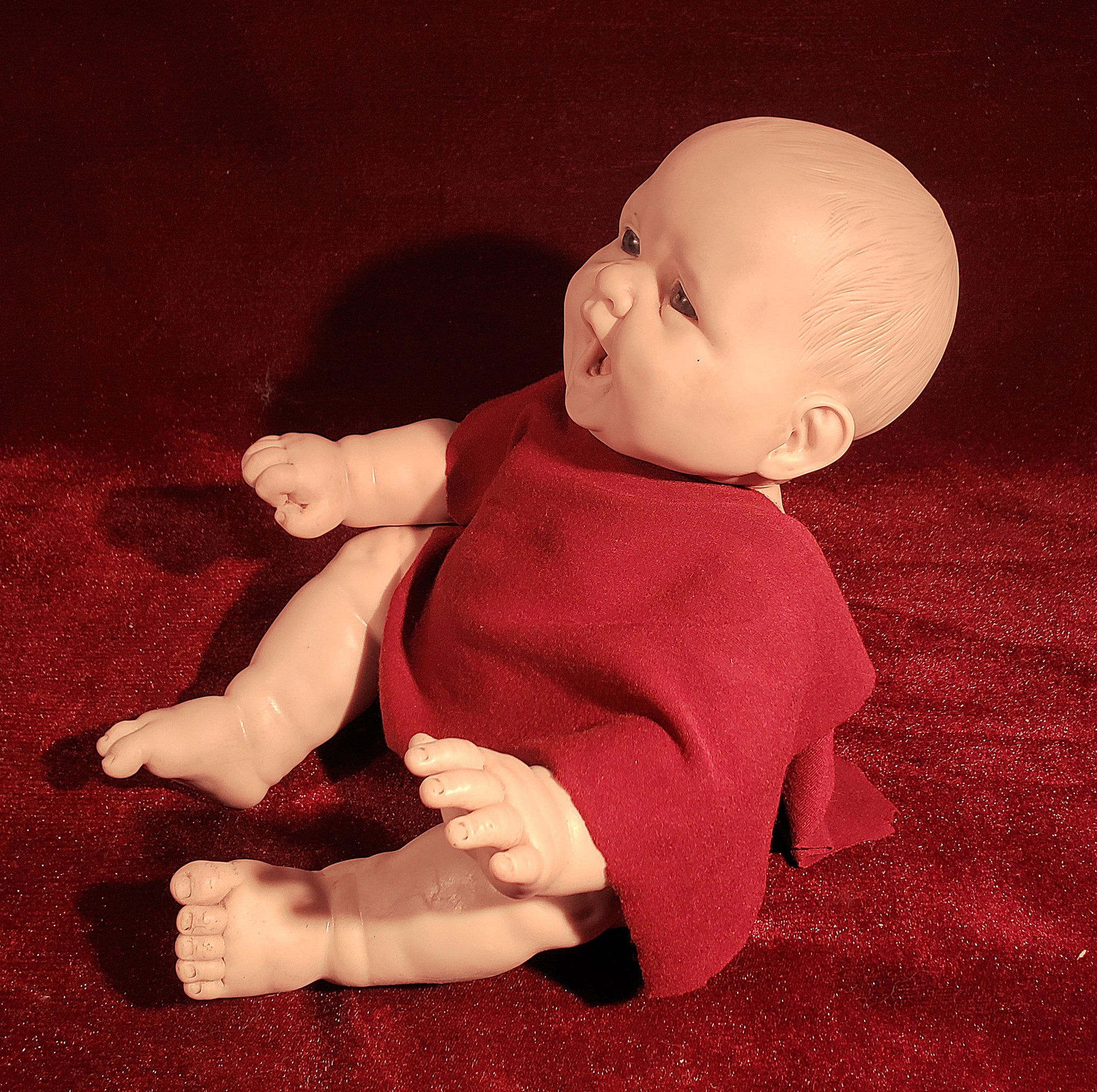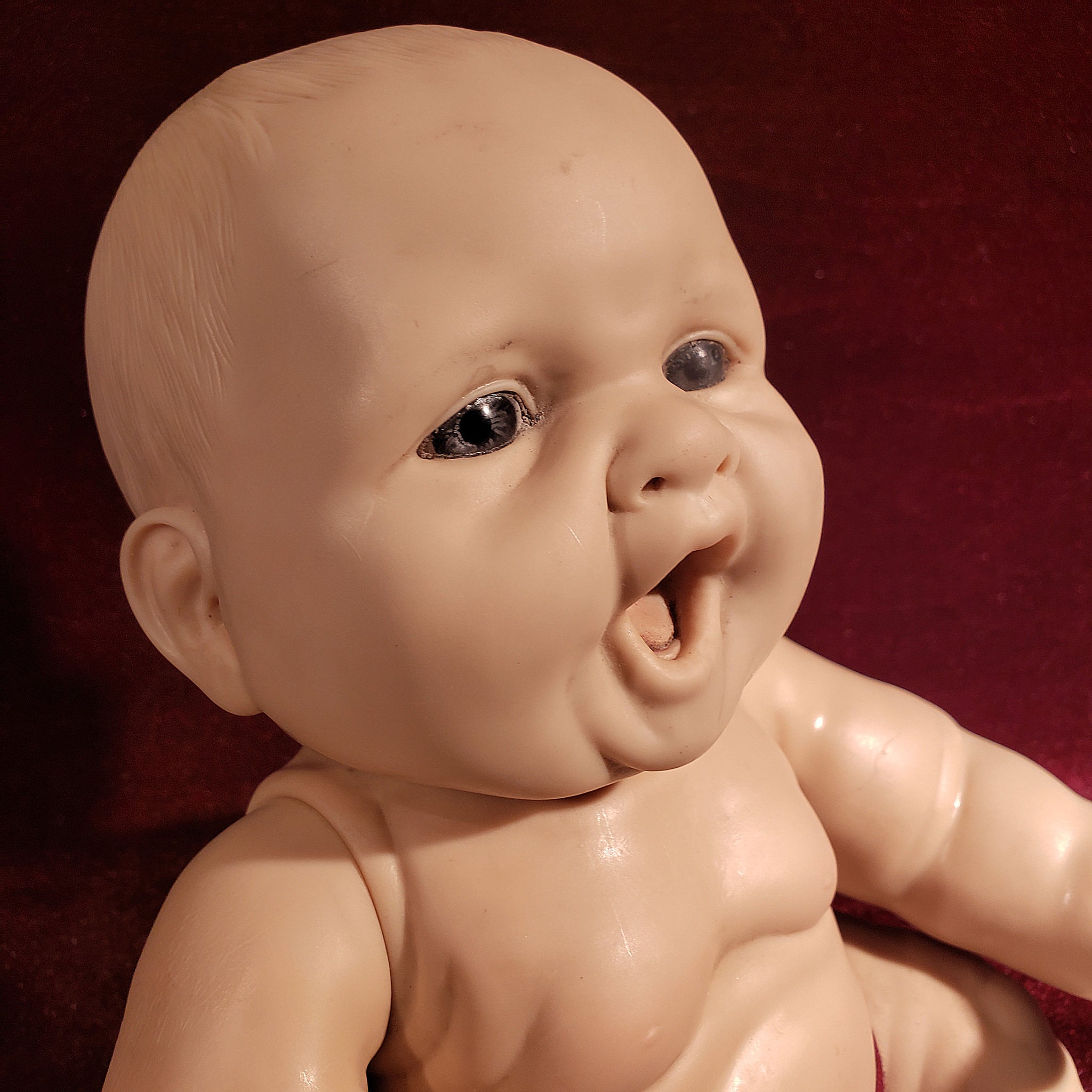Hermosísimo y tierno bebé muñeco realizado en vinil y silicón del estilo de la marca "Lots To Love Babies". Se encuentra en perfectas condiciones solo con algunas muestras del paso del tiempo (principalmente en uno de los ojitos que perdió un poco el acabado brillante) debido a que es una pieza relativamente antigua.