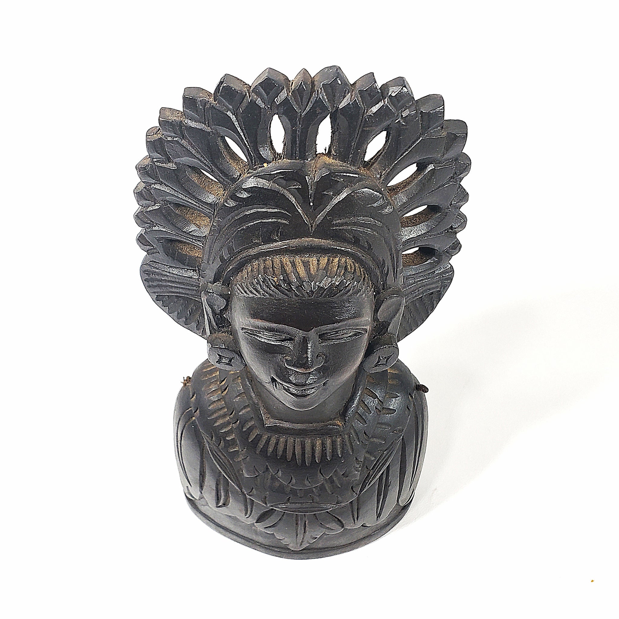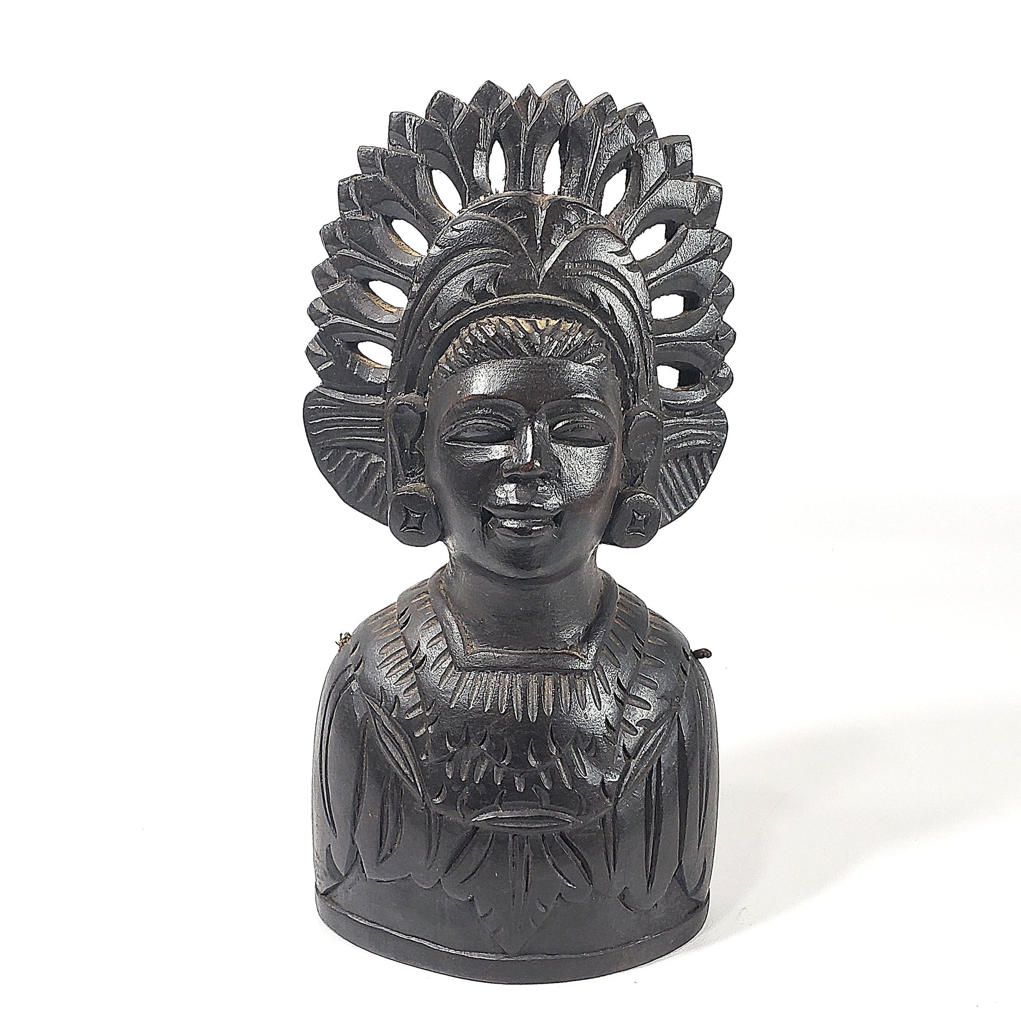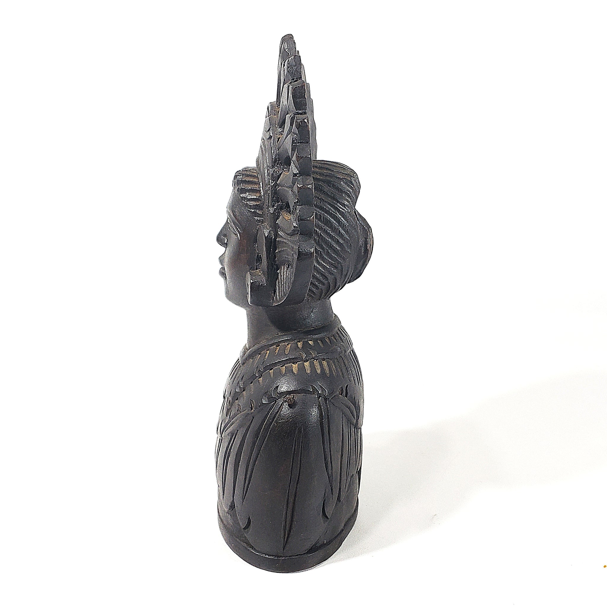 Campana Indonesia Madera Tallada, Dama Tradicional, 19 Cm