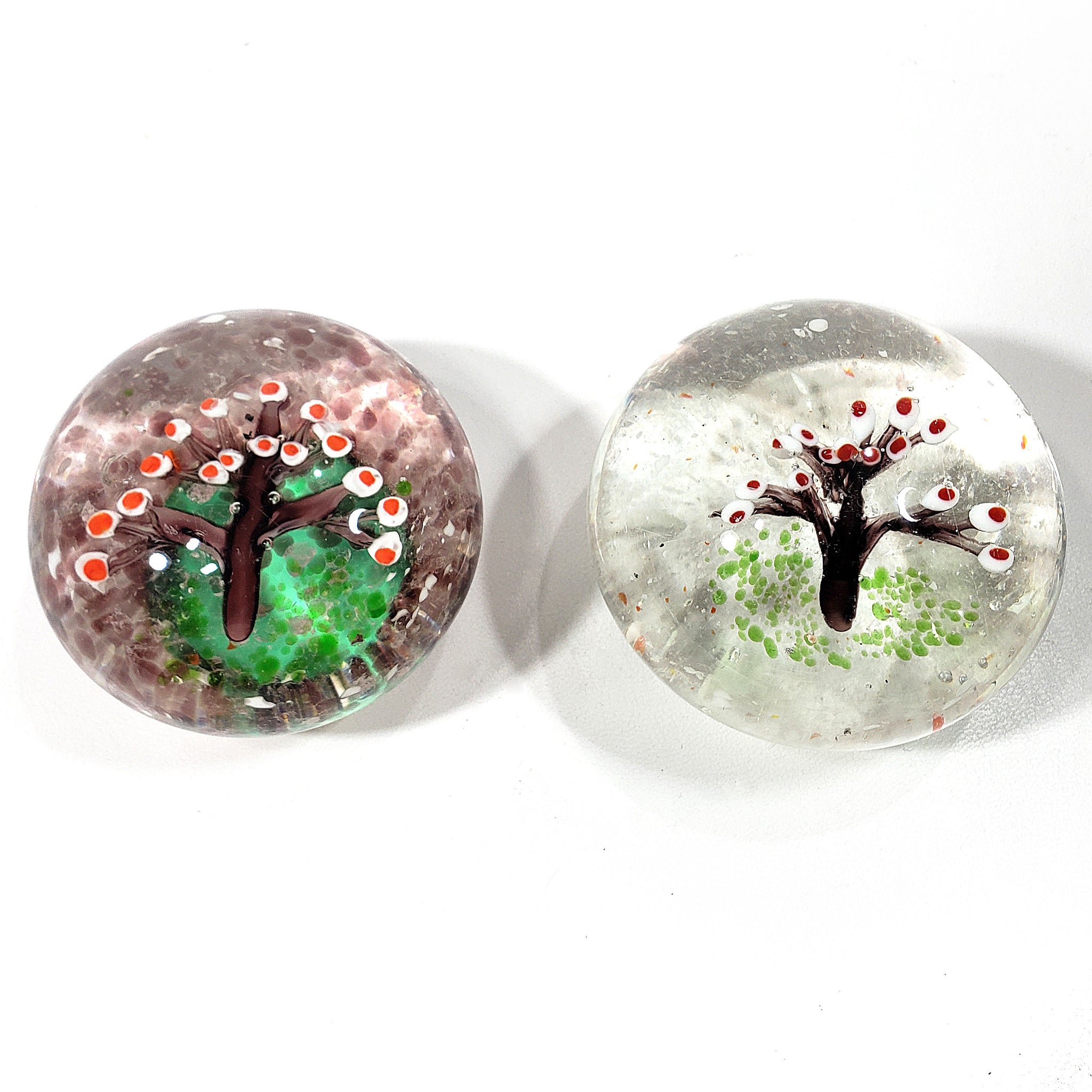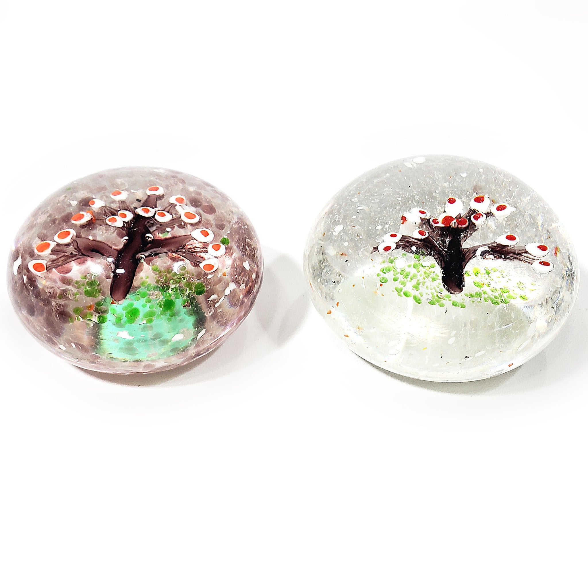 Par Pisapapeles Vintage Cristal Murano Árboles Hechos a Mano