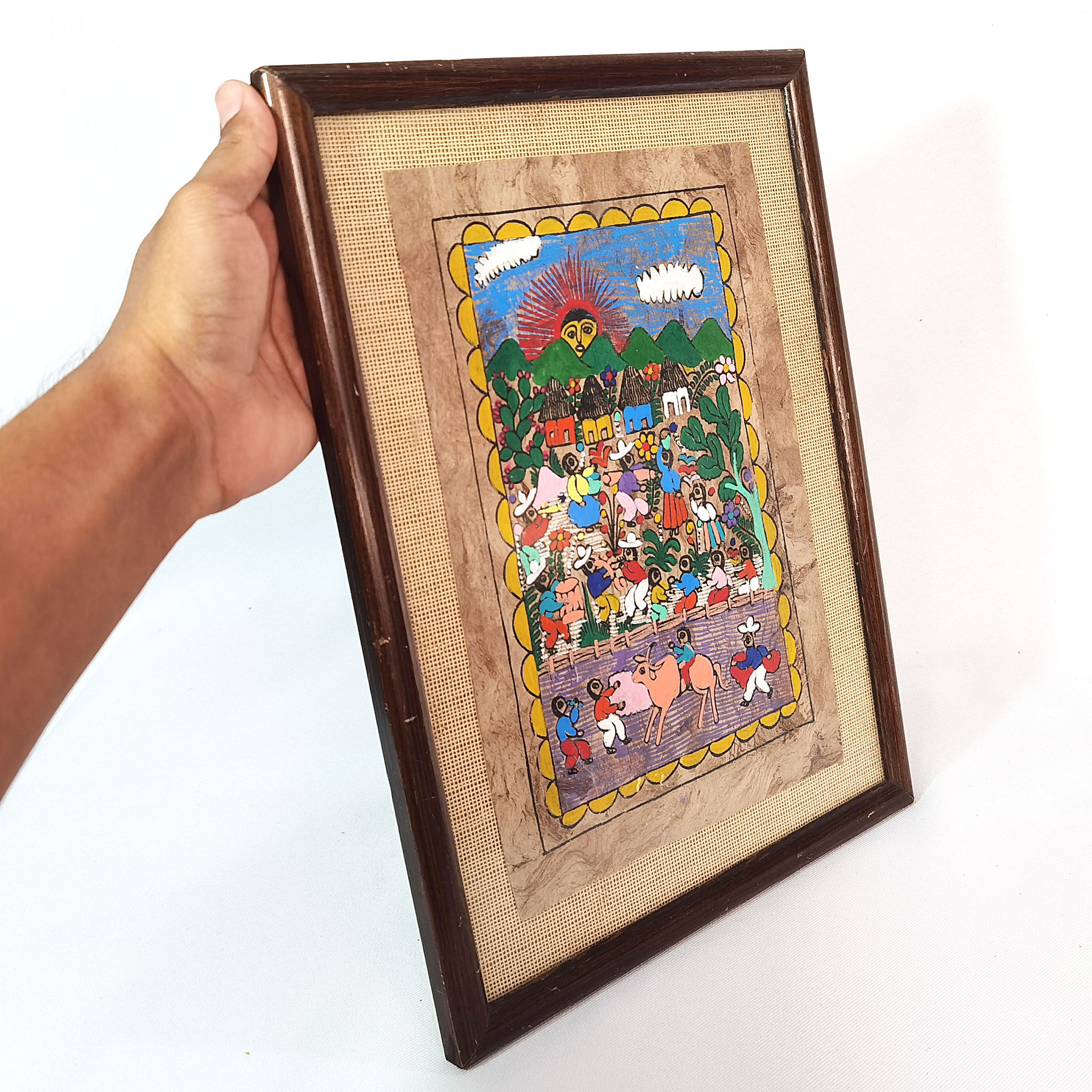 Pintura Artesanal Papel Amate Mexicano Cuadro Enmarcado