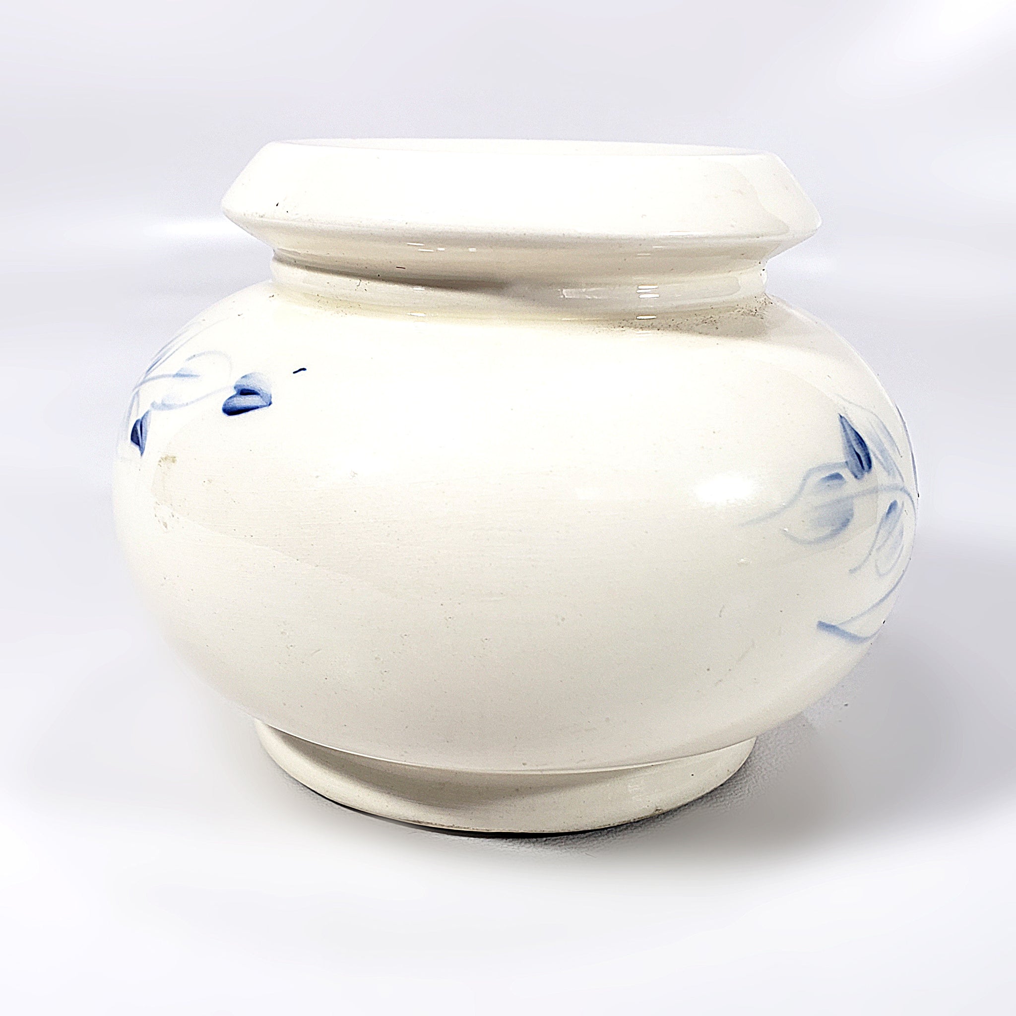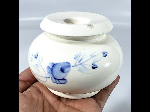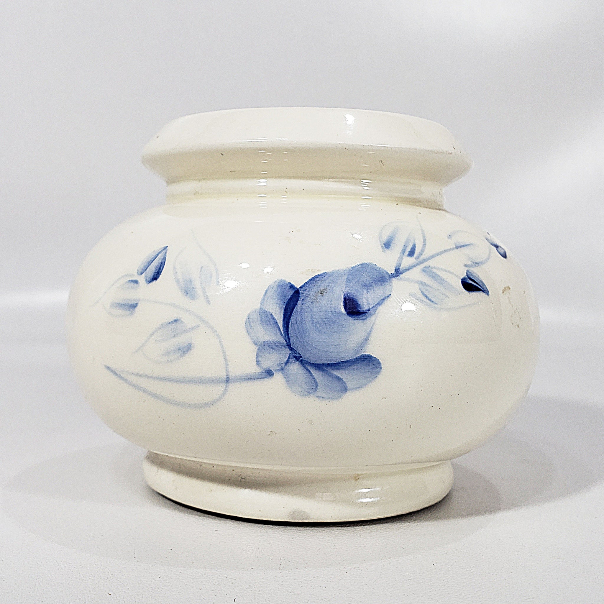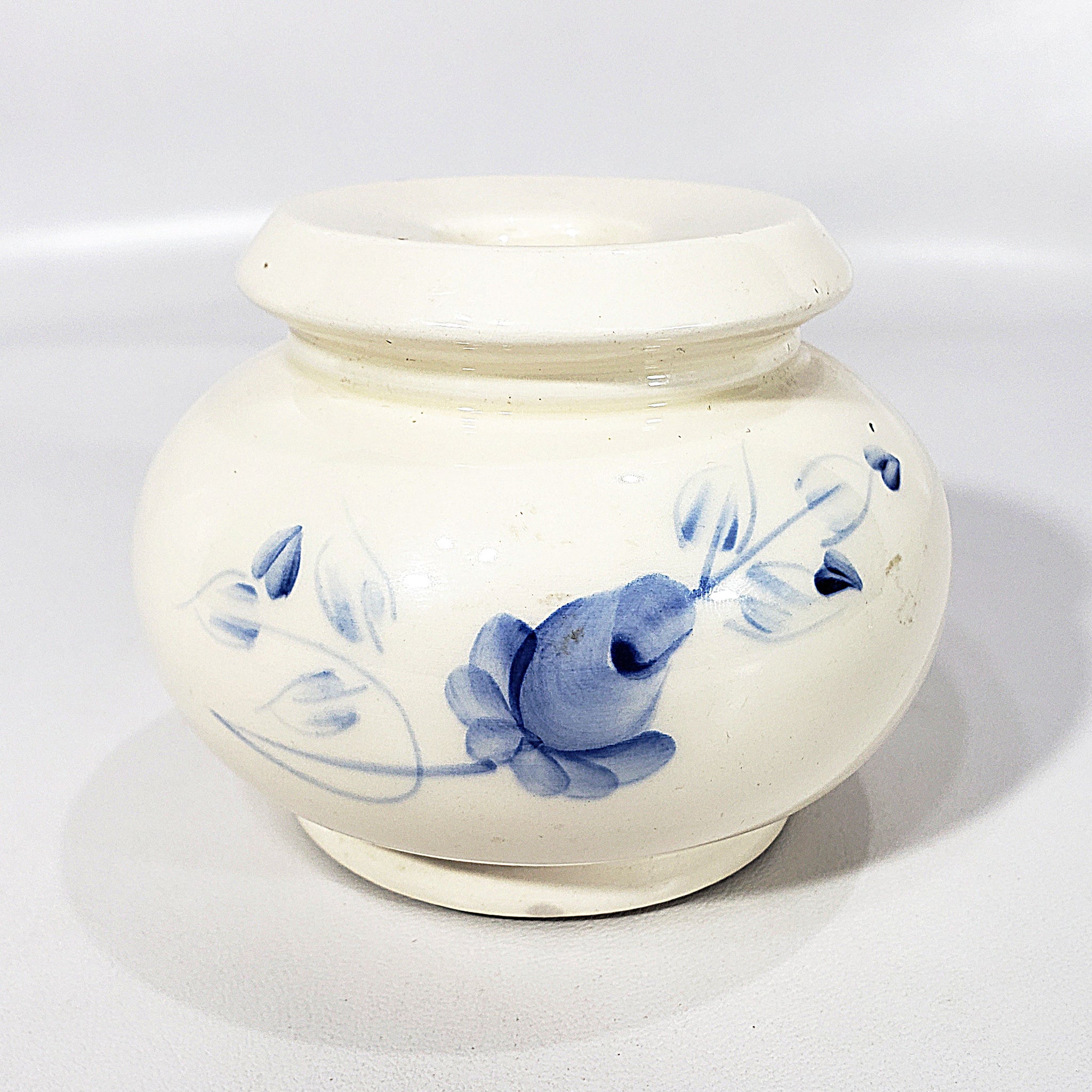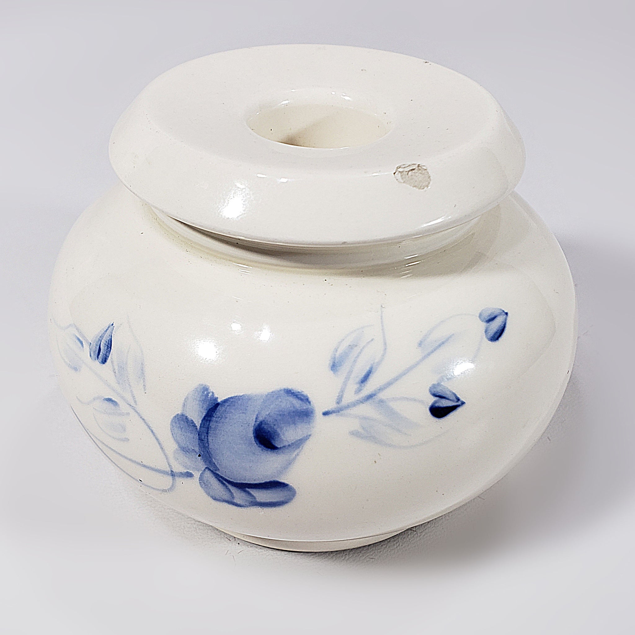 Hermoso porta velas o candelabro vintage realizado en porcelana con decoración floral azul. La pieza tiene alrededor de 30 años de antigüedad, presenta una astilladura mínima en la parte superior, tal como se puede apreciar en las fotografías.