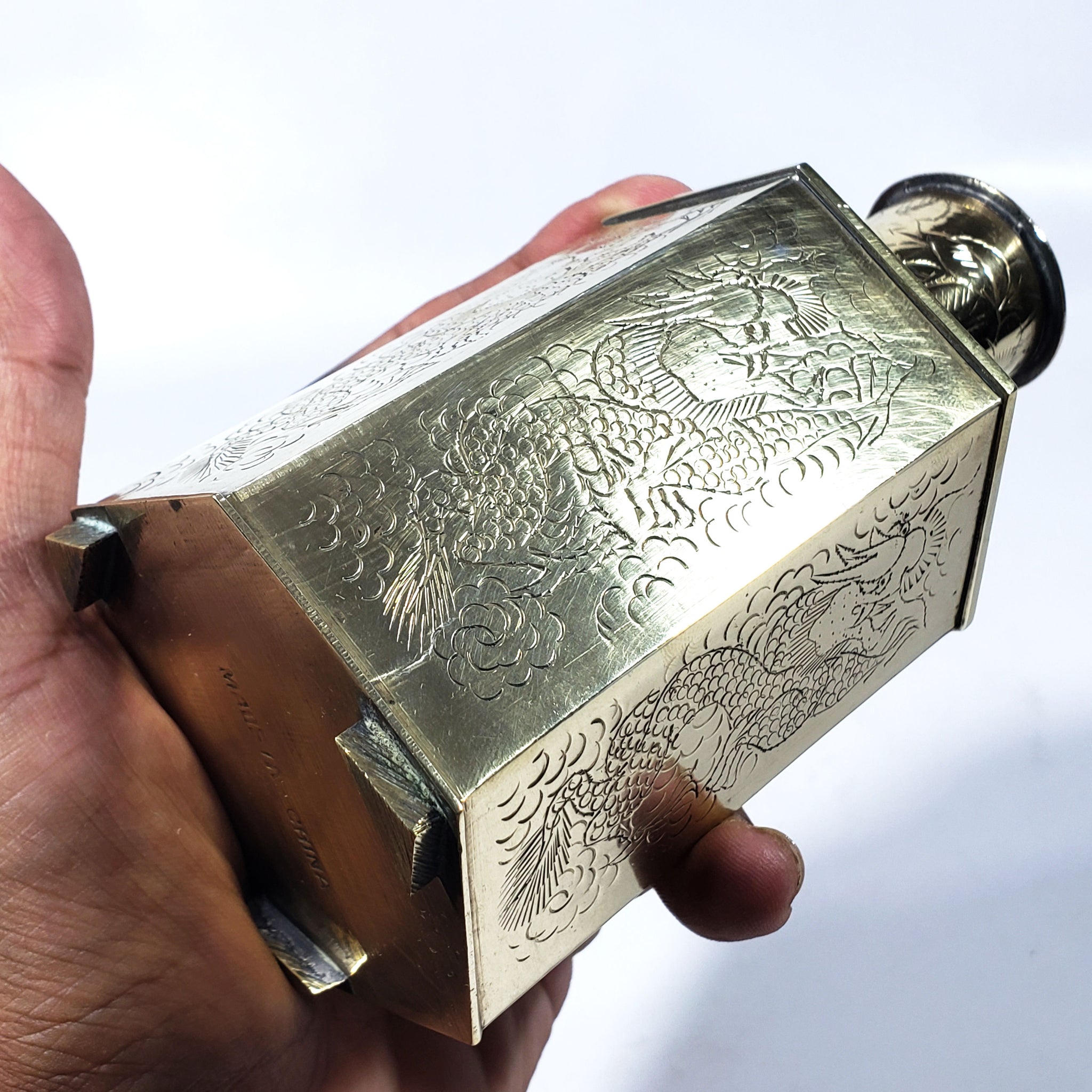 Recipiente Antiguo Chino Bronce de Té, Dragones Grabados